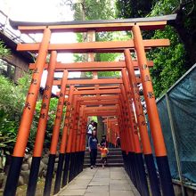 上野公園 医薬祖神 五條天神社と並ぶように建っていて、こちらの参道には奉納された赤い幟が並びます。