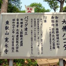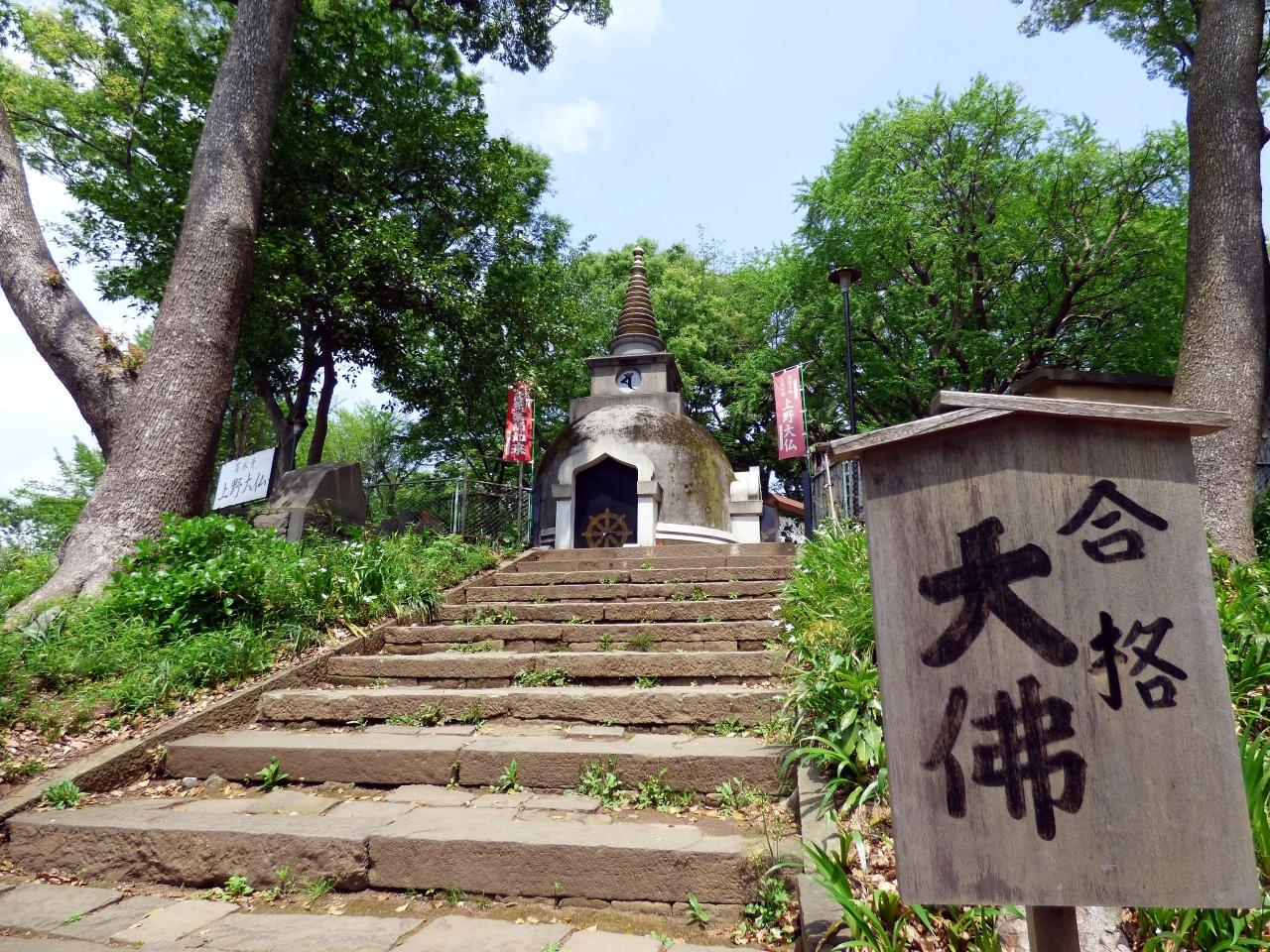 JR上野駅の西側に広がる恩賜上野公園のほぼ中央にある上野精養軒の向かいに大仏山(パゴダの丘)があります。