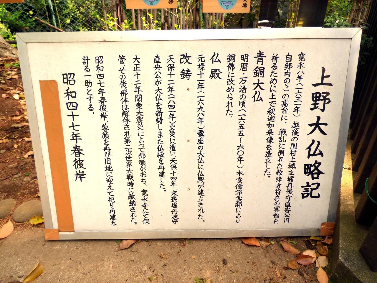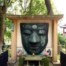 由来の上の大仏の顔は、大正12年の関東大震災では大仏の面部が落下し、第2次世界大戦時には体と脚部を供出したため面部のみが祀られているもので、他には見たことがない変わったものです。