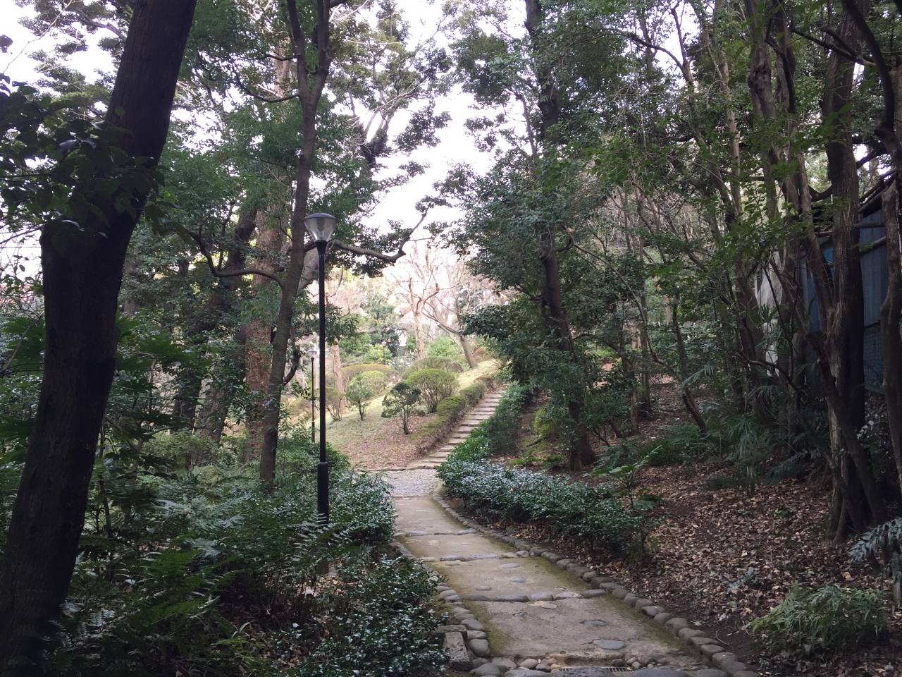 静かな場所に、大変静かで厳かな公園である。昔は、大名屋敷の回遊式庭園であったものが、現在では、新宿区立公園である。大変良く整備されており、都心の騒々しさから解放される空間でもある。適度な高低差もあり、散策には大変良い。