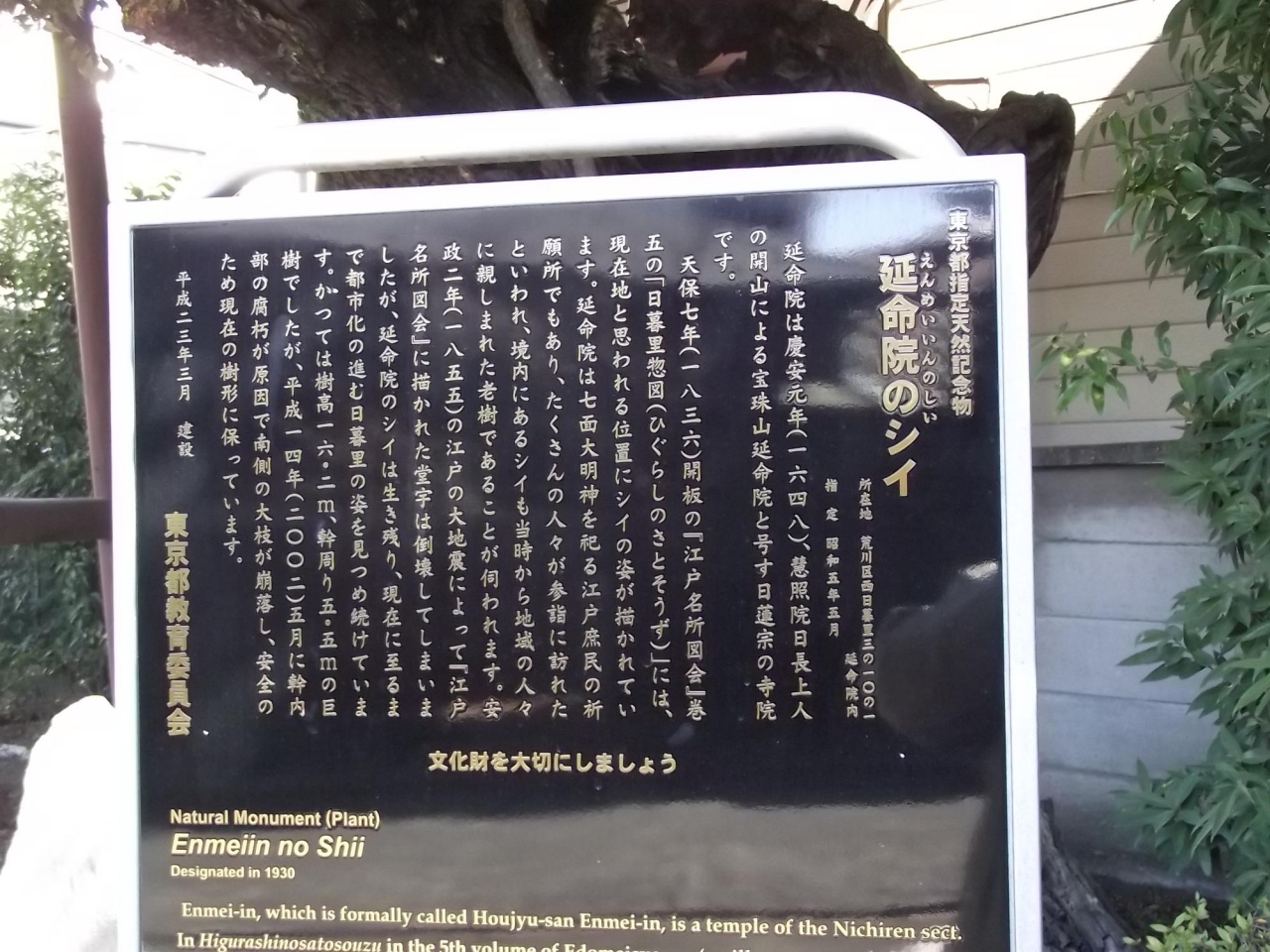 JR日暮里駅の西方向で大きな椎の木がある日蓮宗の寺院です。