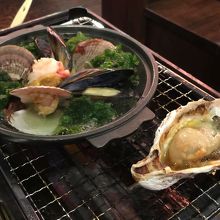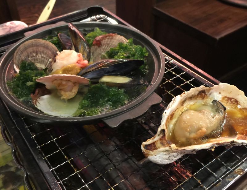 目利きの銀次は海鮮料理を前面に出した居酒屋でした。各テーブルにガスコンロがあって、そこで魚介を焼くことができます。自分のペースで好きな時に焼けるので便利です。
