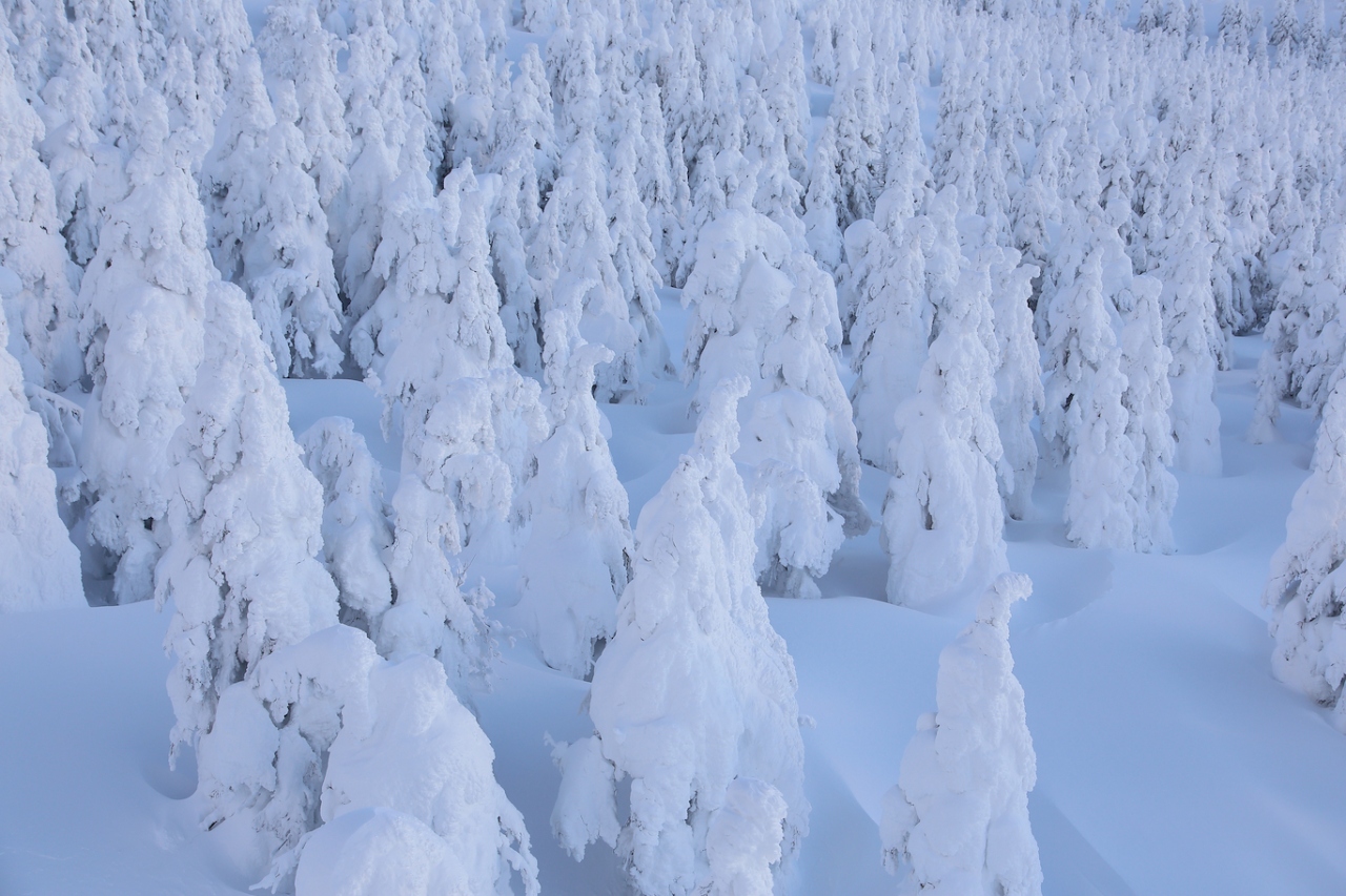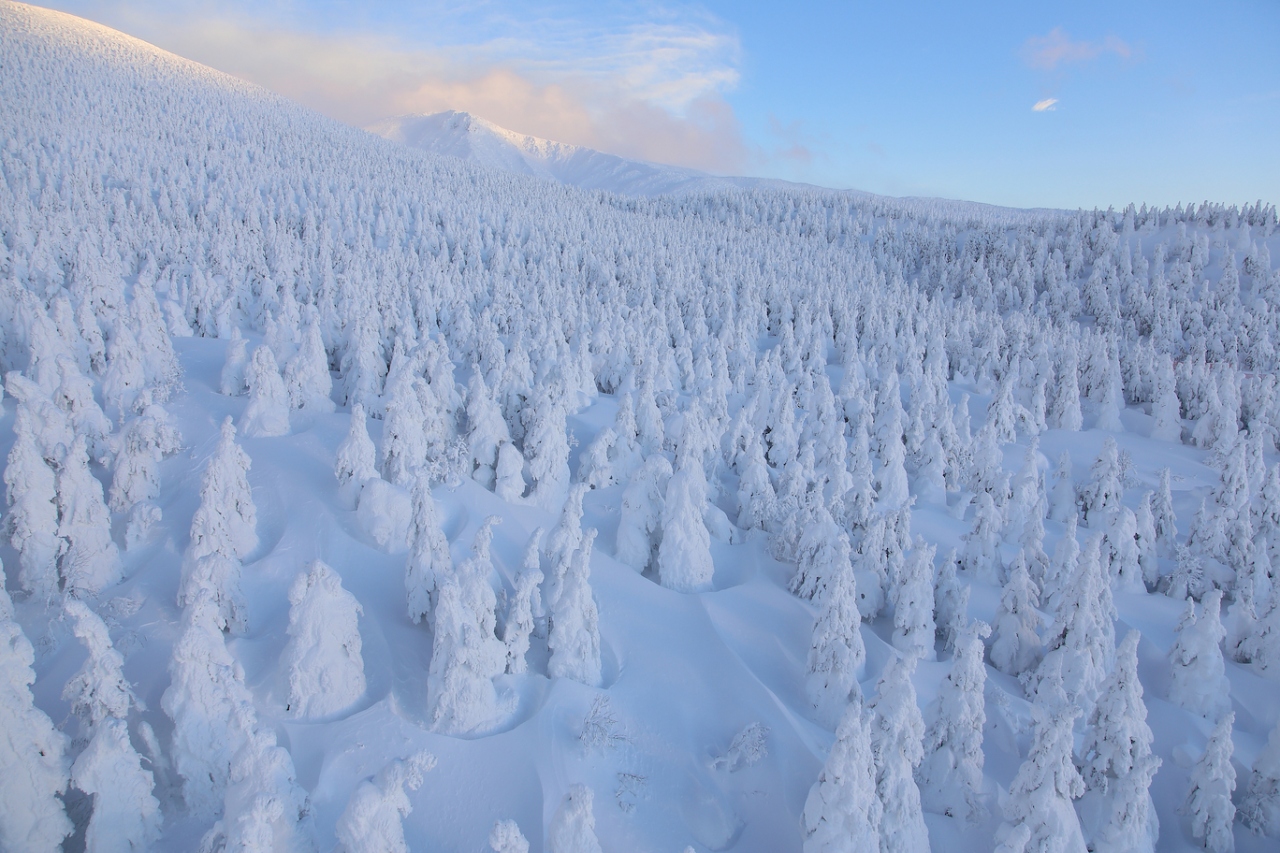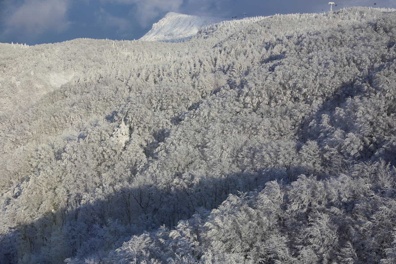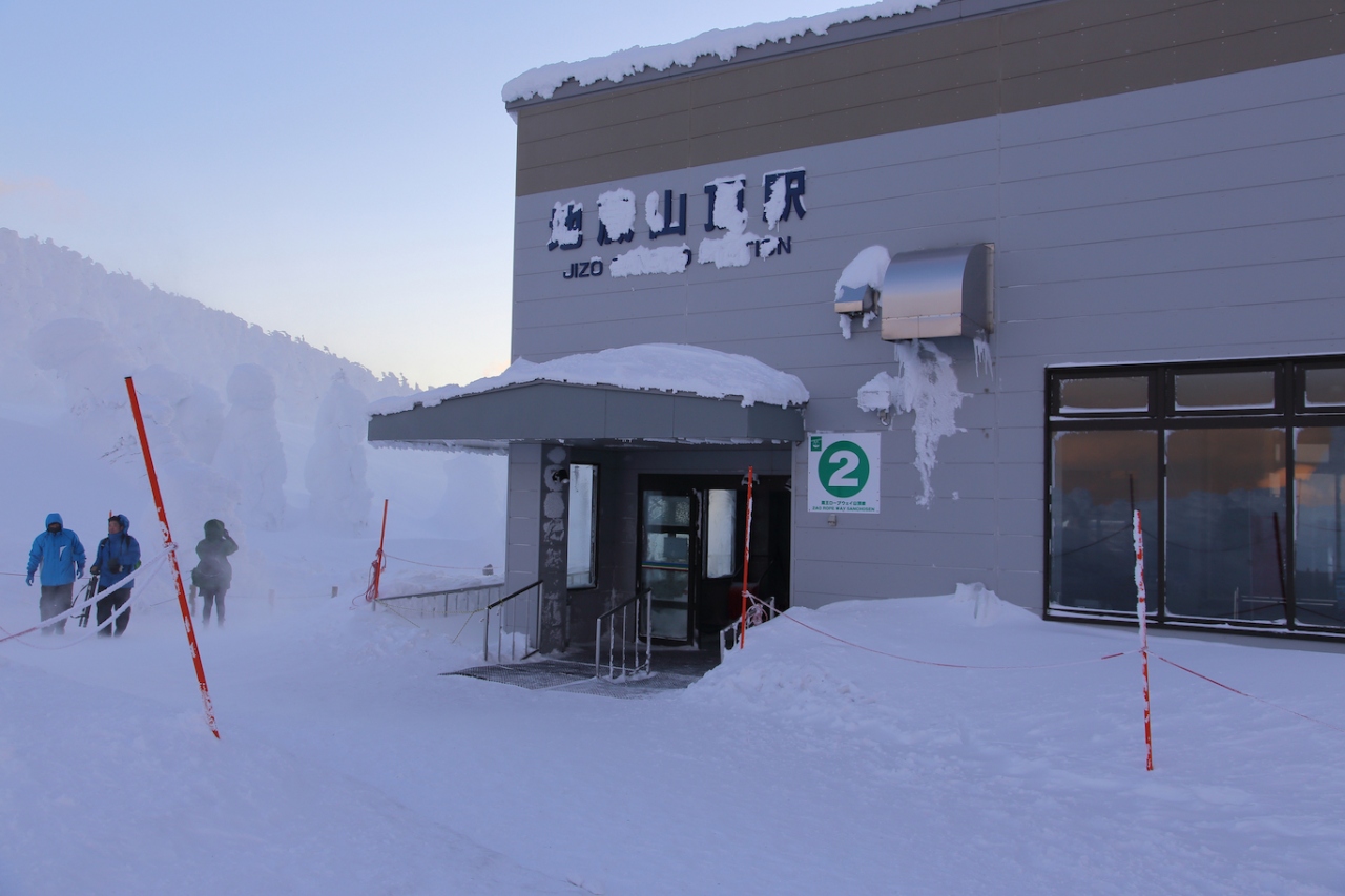 こちらのロープウェイはスキーヤーやスノーボーダーの他、樹氷の見物客も乗るので物凄く混雑します。樹氷見物客を優先してはくれますが、それでもかなり混雑します。ただ、天気さえ良ければゴンドラから絶景が楽しめます。山麓駅から樹氷高原駅までの間は霧氷を、樹氷高原駅から地蔵山頂駅までの間は樹氷を楽しめます。特に、樹氷高原から先はゴンドラの窓を開けられるので、クリアな写真を撮ることができます。但し、冬場に窓を開ける、というのはどう考えても迷惑行為です。ですので、自分一人とか、自分たちのグループしか乗っていないときにやってください。私は夕焼けとライトアップを見るために夕方に乗ったので、私一人しかおらず、心行くまで写真を撮ることができました。