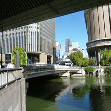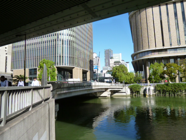 大阪のオフィス街にあり、高架道路がすぐ上を走り、すぐ横には大阪フェスティバルタワーが聳えていました。橋その物が観光スポットをいうより、街歩きの目印をして覚えとくと便利なのだろうと思われました。午前の早い時間に訪問したこともあったのでしょうが、四ツ橋筋の要衝にあたるこの橋は車を含め交通量も多くて、観光客の私は少々戸惑った位です。