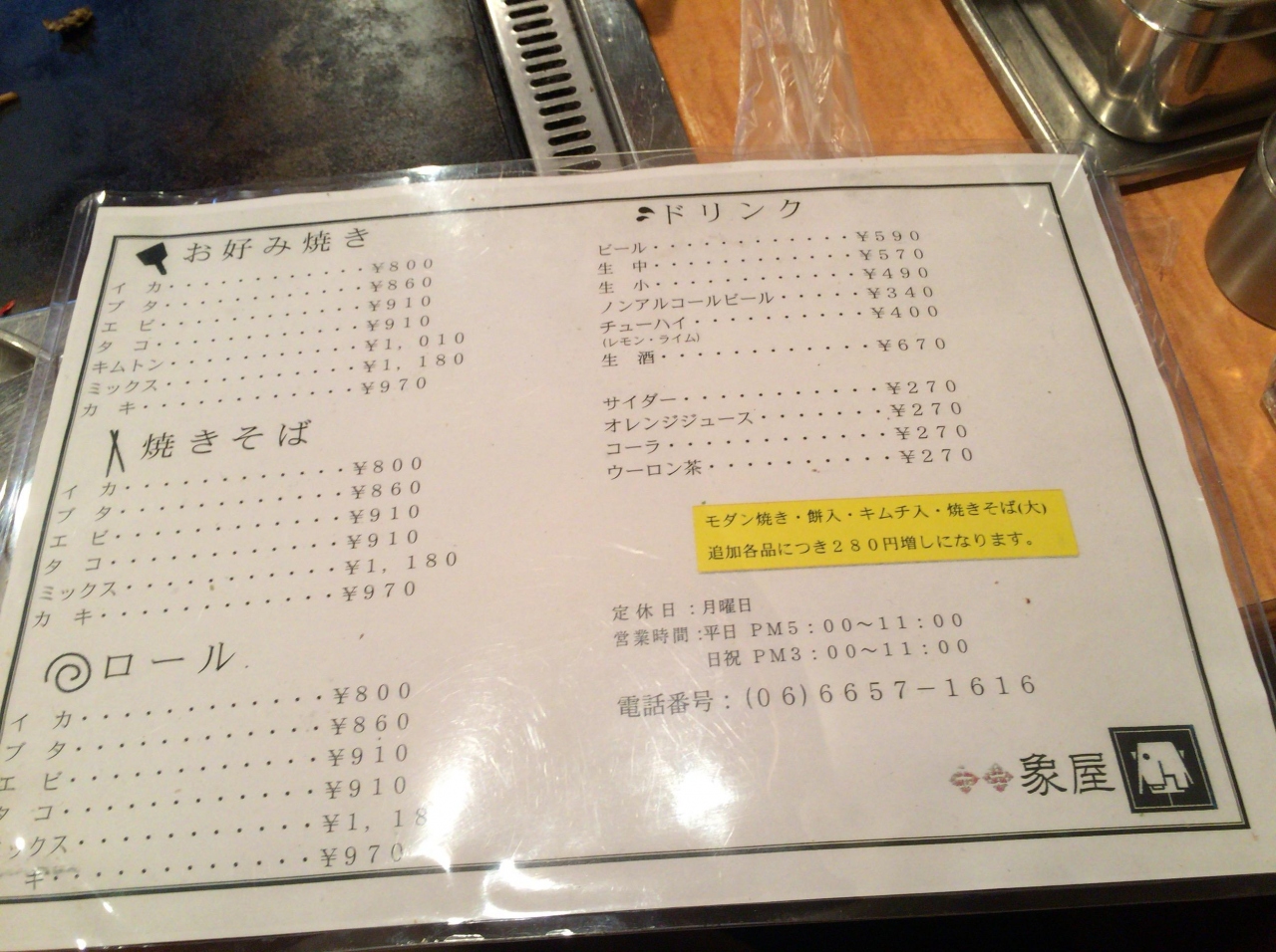 西成区の四つ橋線の玉出駅前交差点すぐにあるお好み焼きの象屋