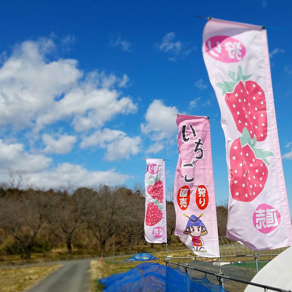 畑の中にあるいちご農園です。すぐそばには都幾川桜堤があります。