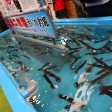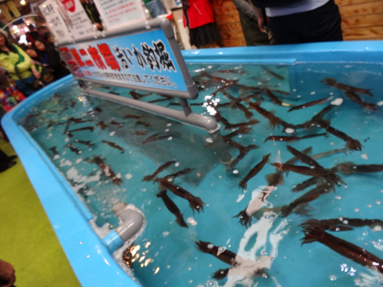 とても有名な朝市のイカ釣り広場ですが、地元の人も観光客も人が多くにぎわっています。市場のほぼ中央にありわかりやすいですし、テレビの撮影もよく行われています。