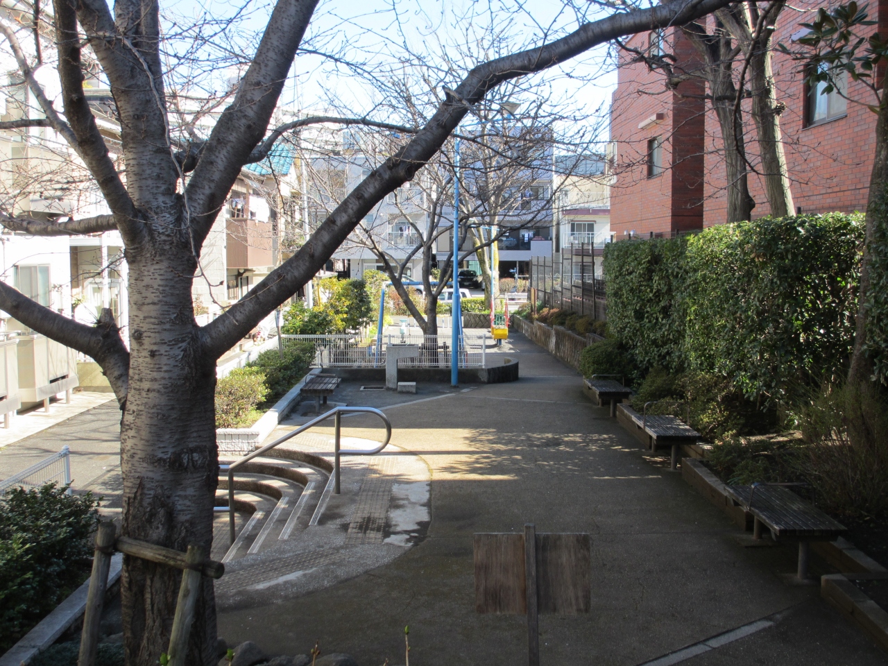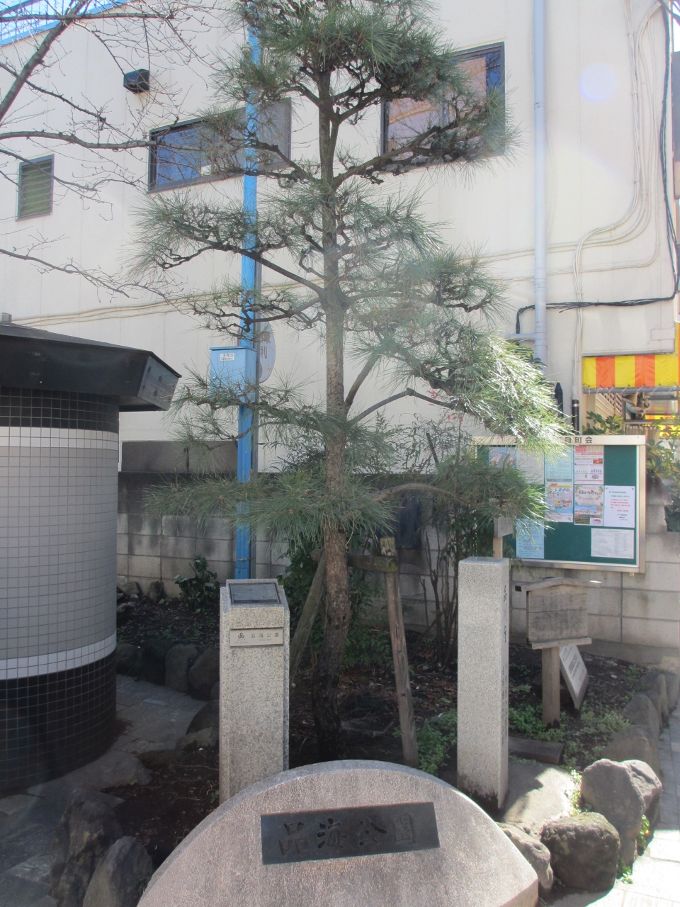 北品川駅と新馬場駅の中間、品川宿にある公園です。入口に品川宿の松と名付けられた細い松があります。ベンチと遊具がある細長い公園ですが、海岸線跡と記された説明板が立っています。今では埋め立てが進みここに海があったことを想像できませんが、東海道品川宿が海岸沿いにあったことを示す場所です。建物の間にあり静かで疲れた時にベンチで休むのにいい公園です。