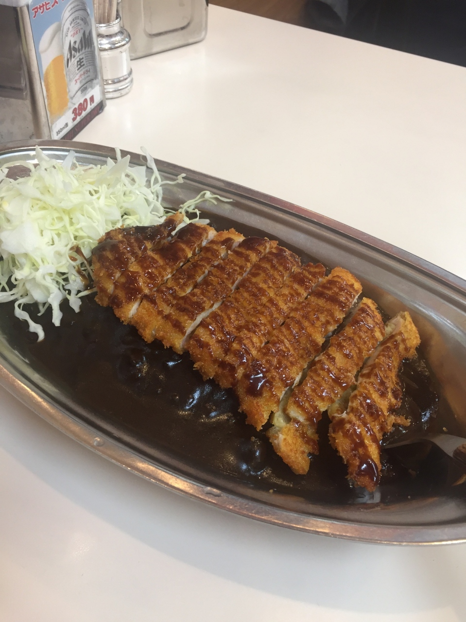 カツが、薄くてちょっとびっくりしましたが、黒いカレールーは濃厚でいい感じでしたし、カツに最初からかかっているソースは酸味のあるタイプで、これが不思議と美味しく、もっとかかっていてもいいな!と思いましたよ~!
