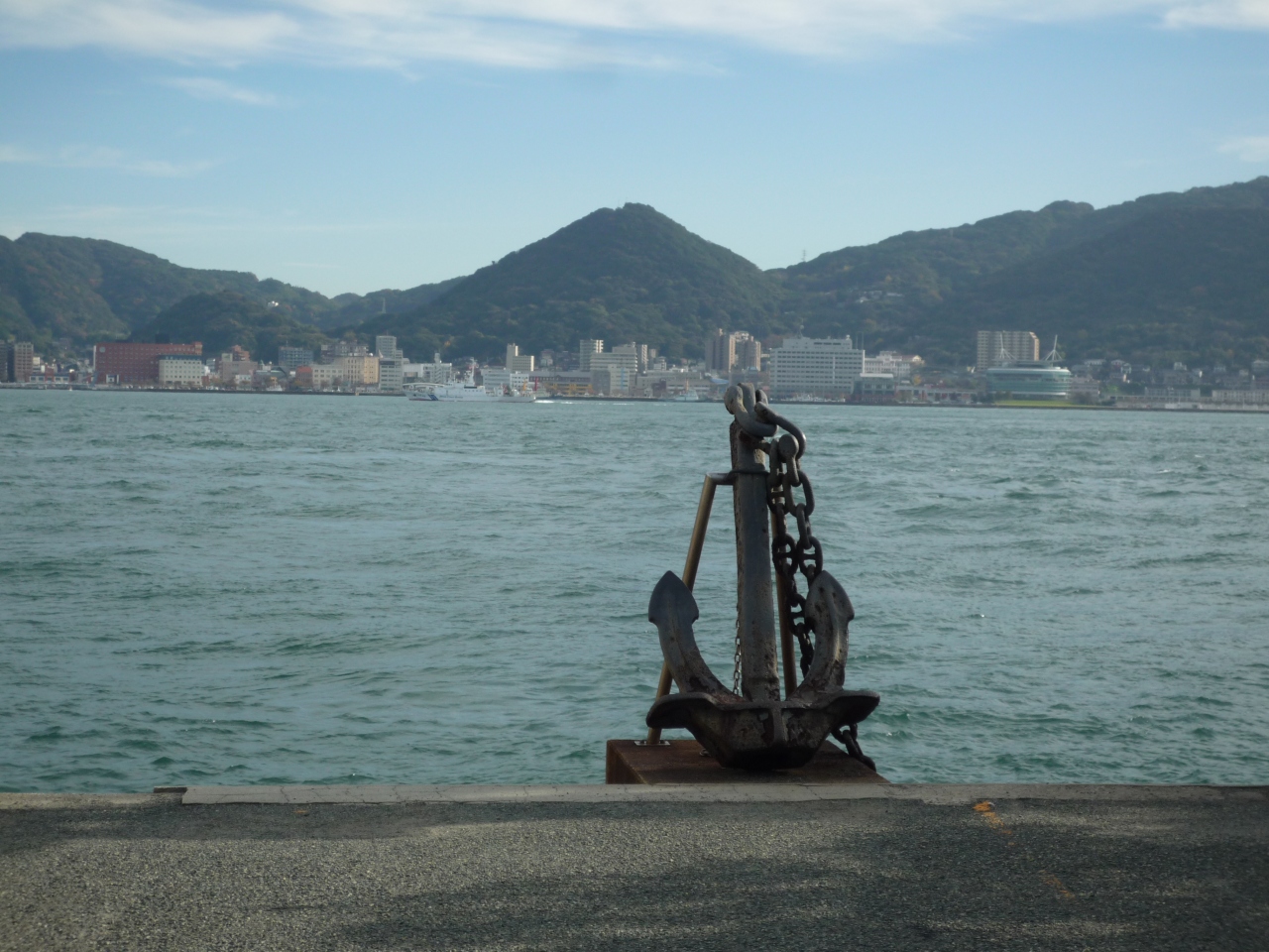 - 錨が置かれたところから関門海峡を見ました