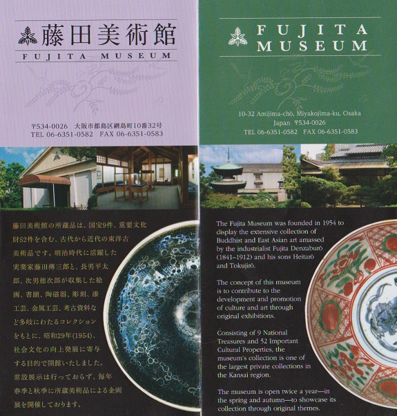 維新後、長州から出でてほぼ一代で冨を築いた「藤田傅三郎」の自宅などが焼け残り、所蔵品を展示する美術館に。庭園や屋敷もあって料亭や結婚式場にもなっている。その、一番大川よりにあるのが「藤田美術館」。曜変天目茶碗を見に行った。大変素晴らしかった。