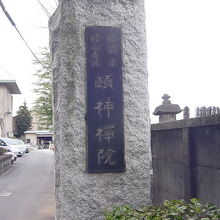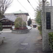 谷中4丁目にはたくさんのお寺がありますが、中でも広い敷地を持ち、ゆったりとした開放感を感じるお寺です。大きな石柱の門を入ると、アスファルト舗装された広い空間が。そして本堂も横に広く、堂々とした作りになっています。