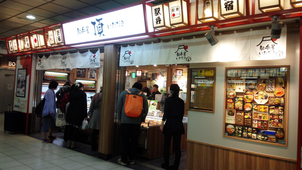 新宿駅南口コンコースに在る駅弁屋さんですが、対面式ではなく、自分で選んでレジに持って行くので、時間をかけても他のお客さんからのプレッシャーを感じる事は有りません。