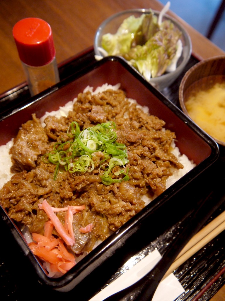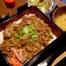 重箱にご飯を敷き詰め、甘辛く料理した馬肉の細切れをトッピング。