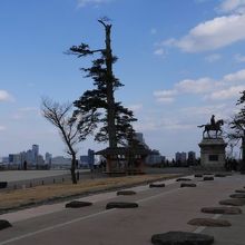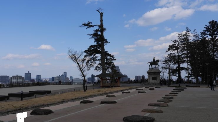 仙台駅からるーぷる仙台で約22分、仙台城跡を中心とした公園。大きく蛇行する広瀬川と青葉山に挟まれた立地であり、高台にある。広瀬川と青葉山の地形が城の防衛に適した立地だったようだ。園内には伊達政宗の銅像や護国神社、博物館等の施設が立地。高台から仙台市街の街並みの眺望も素晴らしい。ボランティアスタッフが銅像をバックに撮影のサービスもしてくれるようだ。土曜日の訪問で多くの人々でにぎわっていた。