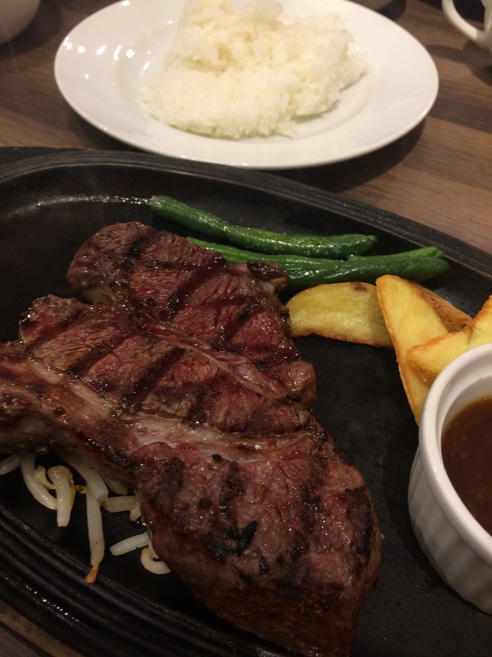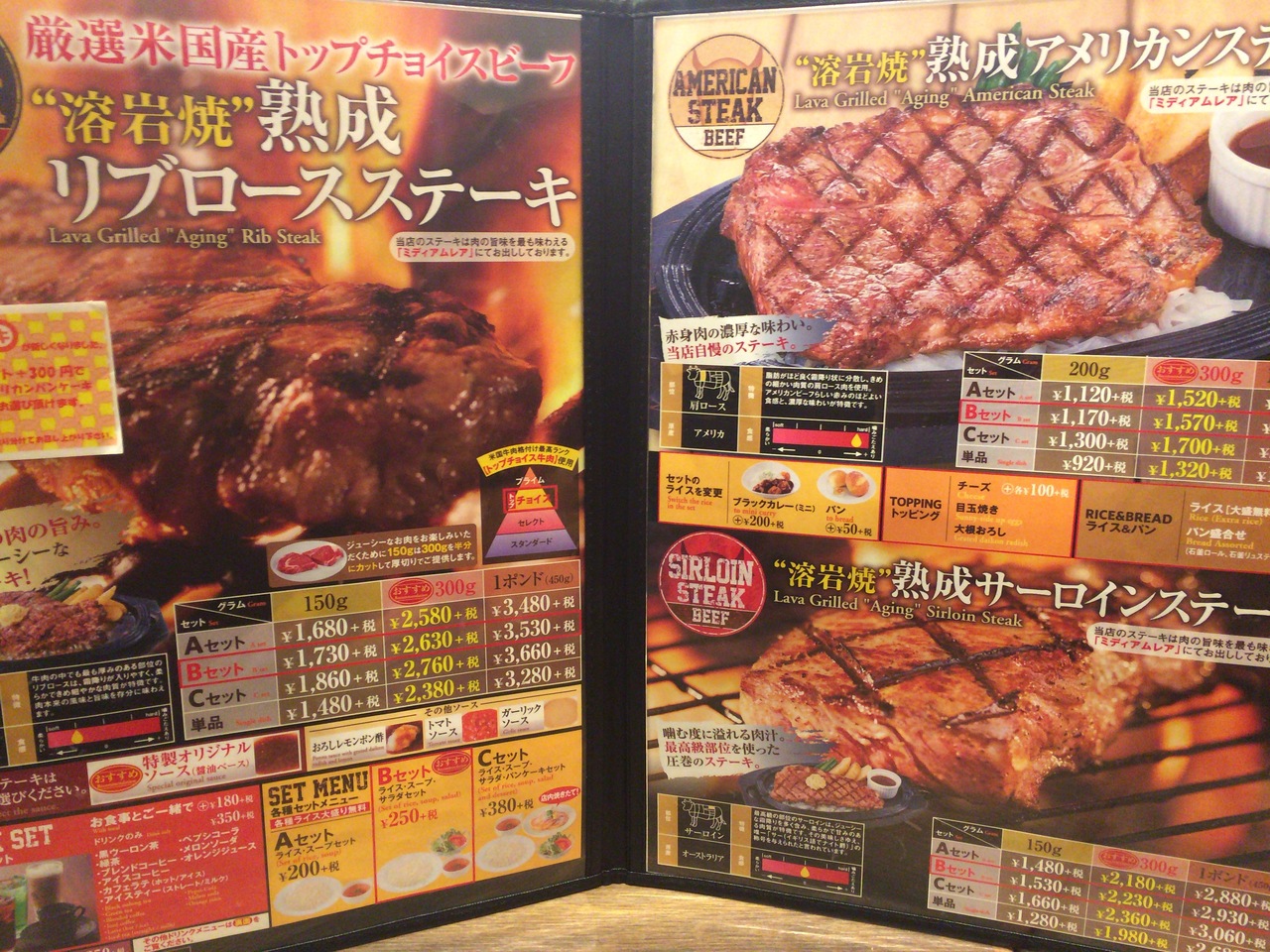 熟成肉が食べれるとあって、人気店のようで30分ほど並びました。熟成肉って柔らかいというイメージがあったので、一番安いのでも大丈夫だろうと、アメリカンステーキを頼んだのですが、想像以上に噛みごたえがあって、父親はかたいと嘆いていました。笑