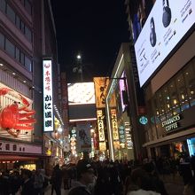色々なネオン看板が見れる場所、大阪観光名所の一つになるのでしょう、確かに派手な看板が沢山ありキラキラとにぎやかです。皆さん看板を見ているので気をつけないとぶつかってしまいます。