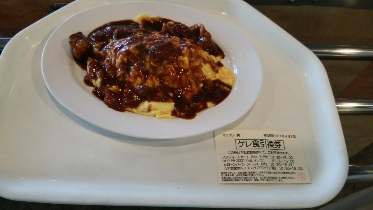 今年何回もお世話になっているイゾラのゲレ食ですが、以前ゲレ食人気投票に応募したら、マンスリー賞のゲレ食一食分があたり、じゃあここで1番高いのを と、ビーフシチューのオムライス1600円をいただきました。なかなか自腹では出せない金額なので、もちろん美味しかったです。息子が大喜びして完食してました。