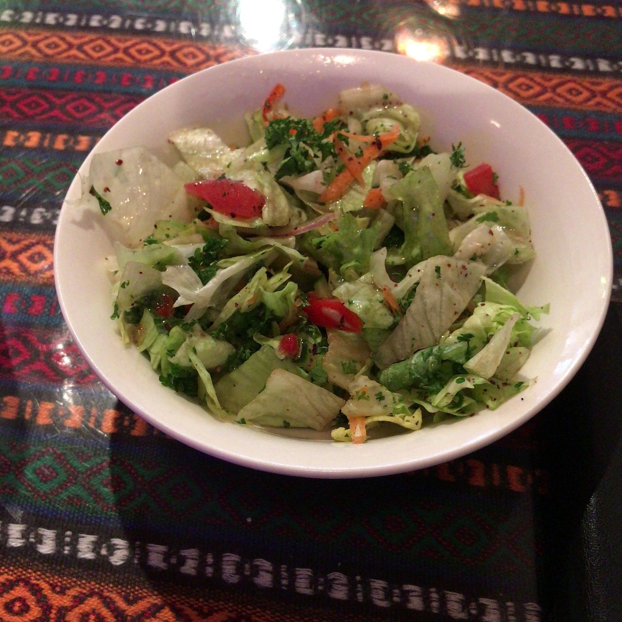 普通、ランチのサラダってしょぼいけど、ここはパセリとトマトが混ぜ込んであり、なんだかモロッコやレバノンみたい。量も多いです。