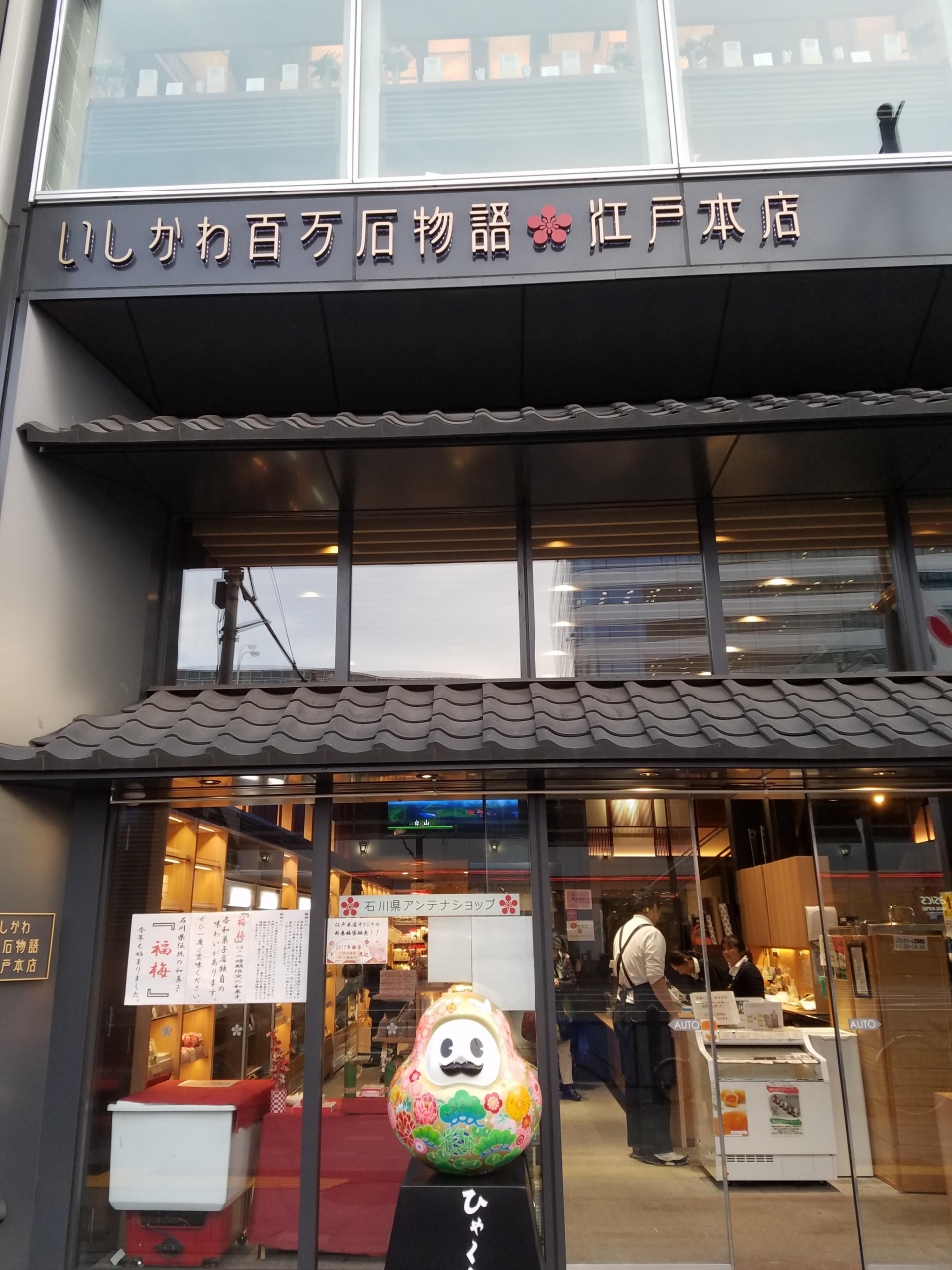 銀座1丁目外堀通り沿い、近くには、高知や沖縄のアンテナショップがあります。和の雰囲気いっぱいの店内は、地階が地酒やイートイン、1階が土産コーナー、2階が伝統工芸や観光案内のコーナーになっています。北陸新幹線開通で話題の金沢をよく知ることができました。