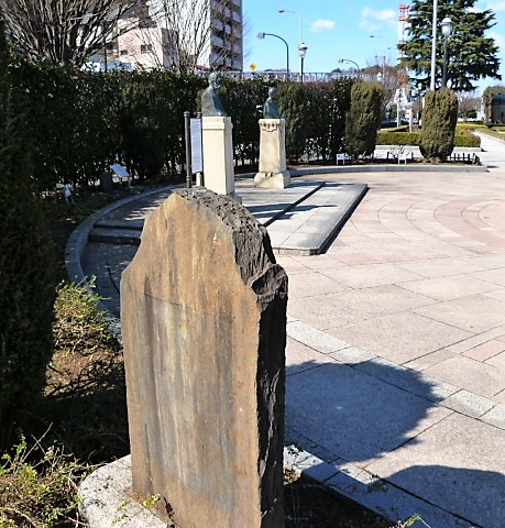 開港碑と2つの銅像;横須賀の礎