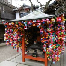 表門の修復工事中で分かりづらく通り過ぎようとしたところ、カラフルな『くくり猿』が見えて気がつきました。