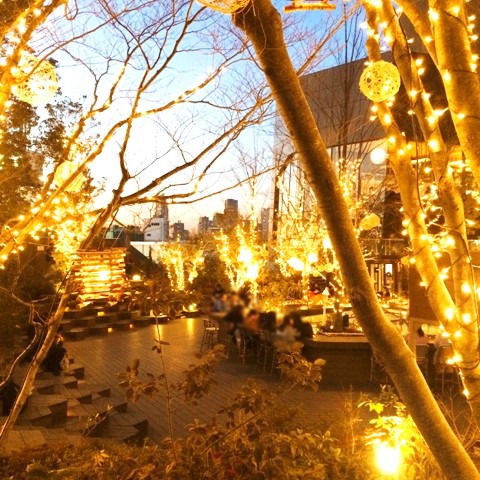 6階のスターバックスの向かいにおもはらの森という屋上庭園があって、そちらのイルミネーションがとても綺麗でした。
