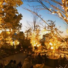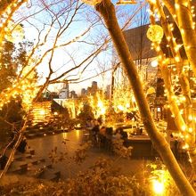 夏はガーデニングやビアガーデンをやっているようです。イルミネーションは期間限定です。