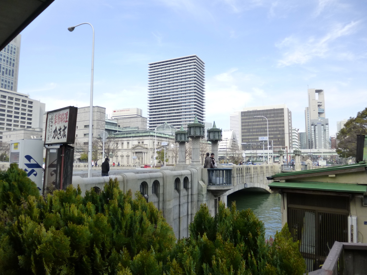 背後には日本銀行の歴史的なビルや、斬新な外観の新梅田シティビルの姿も見え、大阪を代表する光景を堪能しました。