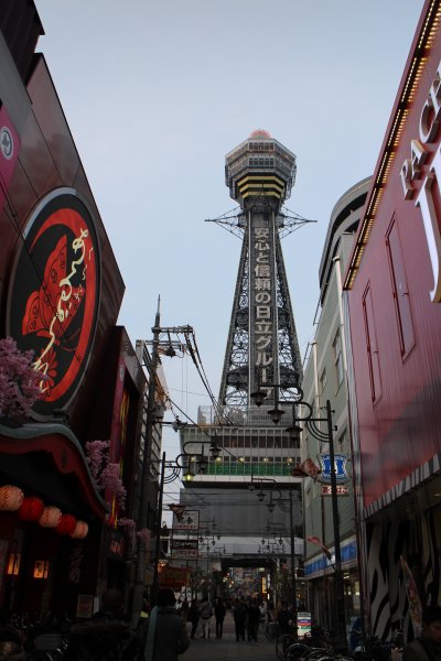天王寺公園から見えていた通天閣ですが、新世界でいろいろ寄り道を余儀なくされ、やっと辿り着けました。細い通りから見える通天閣の構図が、東京の新仲見世から見えるスカイツリーの構図にも似て、ついつい写真を撮ってしまいました。思いのほか高さはないものの大阪に来た証になりました。