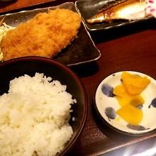 金山駅に併設している商業施設(ループ金山)にある居酒屋です。ランチタイムも営業していたので、このお店で食事をしました。メニューには、魚料理、肉料理などがあり、これらの商品から2品を選択します。トンカツと鯖のてりやきを食べましたが、ボリュームがあるため、お腹いっぱいになりました。