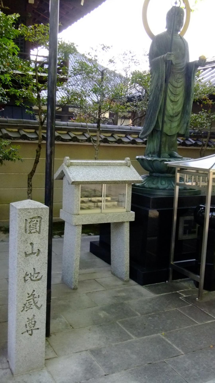 京都観光の際に見学しました。場所は円山公園から高台寺に向かう途中ですので、アクセスはしやすいのですが、気を付けて歩かないとちょっと前を通り過ぎてしまうようなコンパクトな感じのお地蔵さまですので注意!設置の由来なども詳しく石板に書いてありました。