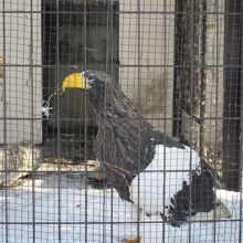 その中に黄色のクチバシが印象的なオオワシがいます。円山動物園では世界最長の飼育記録があるそうです。動物たちへのストレスが少ない環境になっているのかもしれません。