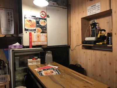 店内はカウンターと奥のテーブル席。お世辞にもきれいとは言えませんが工夫されたラーメンの味には満足。
