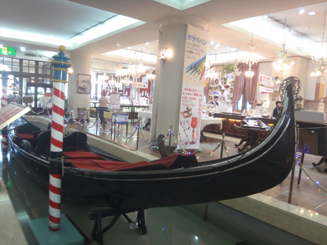イタリアのヴェネツィアへのあこがれの強さが生み出したヴェネツィアっぽい施設という感じです。ゴンドラだけは本物を飾っていますが、基本的にはイタリアとか当時の貴族文化っぽいものを感じさせる工夫がなんとなくあるだけなので、あまり観光としても面白いものではありません。