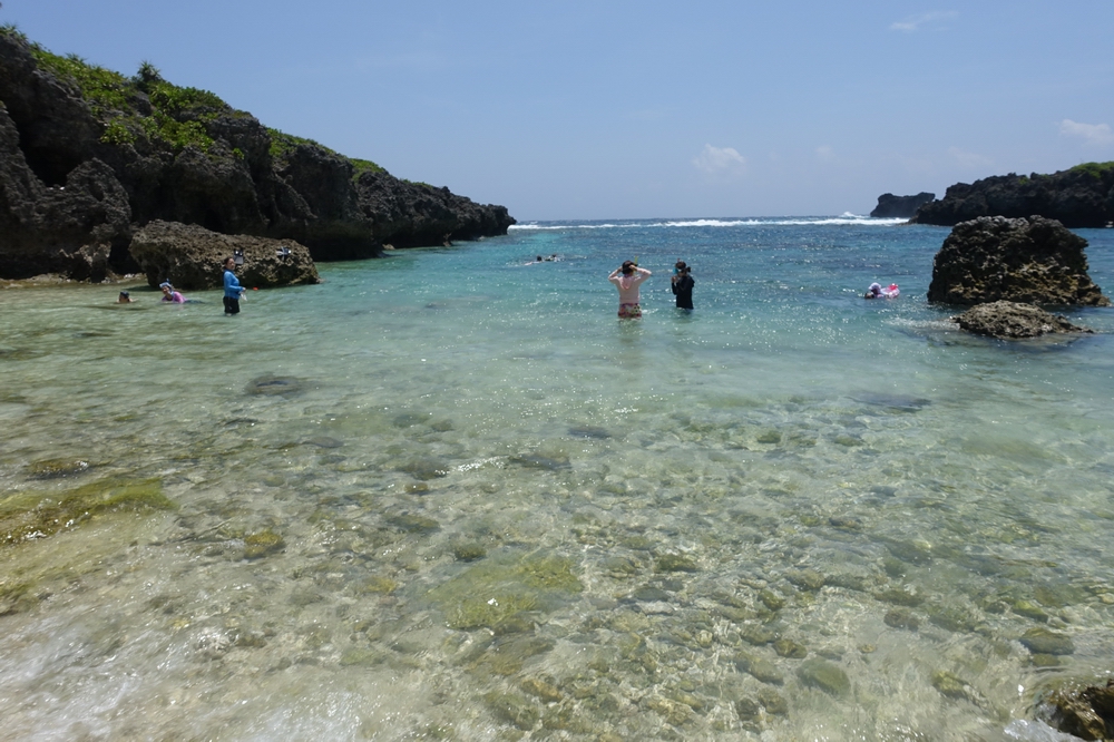 水深は結構あるので、干潮時で泳ぎづらいってこともあまりなさそう。魚もたくさん見られ、クマノミがいるポイントも何か所かありました。シャワーやトイレなどの設備は何もないので、渡口の浜の施設を使うといいと思います。駐車場も特になく、路肩のスペースに停める形になります。