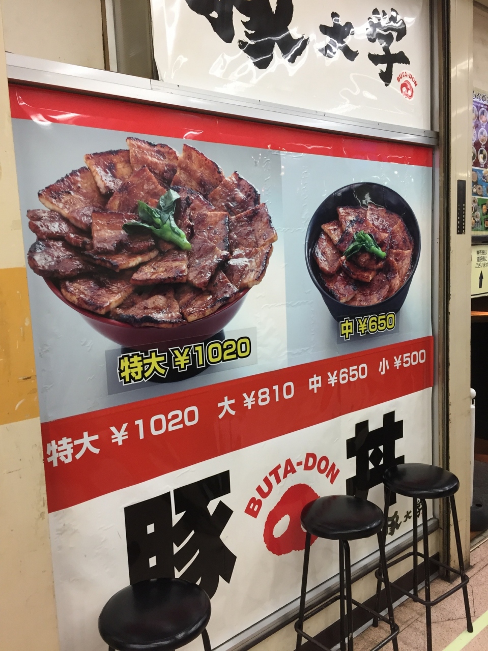 丼の値段の安さ、肉の量、全体的なボリュームと三拍子揃っており食べる人を楽しませてくれる豚丼です。