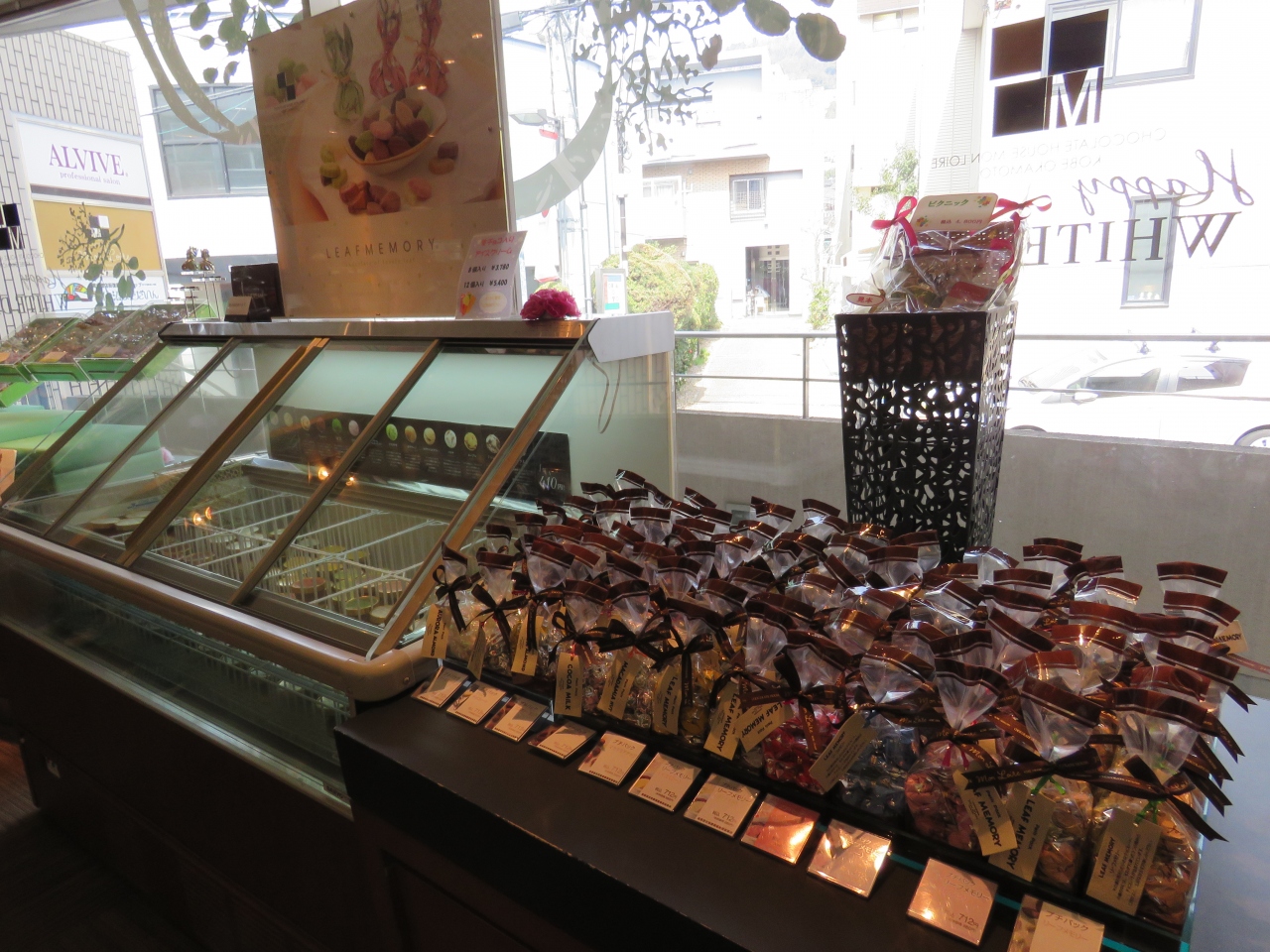 葉っぱの形をしたリーフチョコレートが有名で、抹茶やイチゴ味もあり~以前頂き物で食べて美味しかったのでお店を覗きますと~・・