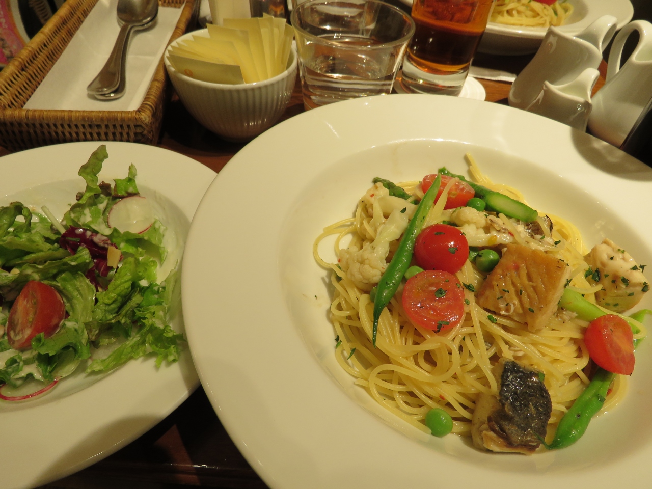 ランチサービスセットは、パスタ+サラダ+ドリンク+ケーキ付@1,500円なのでお得感はあります。