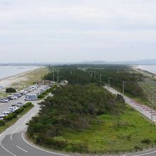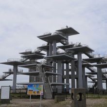 千葉県富津市富津岬の先端付近にある展望塔。独特の形は盆栽などに使われる五葉松をモチーフにしている。展望台からは東京湾を一望、対岸の神奈川県まで見渡すことができ、東京湾要塞として築かれた人工島の第一海堡、第二海堡という歴史的に貴重な遺構も見られる。ばっちり晴れれば富士山も見えるというが、訪問時はあいにくのかすんだ天気だった。