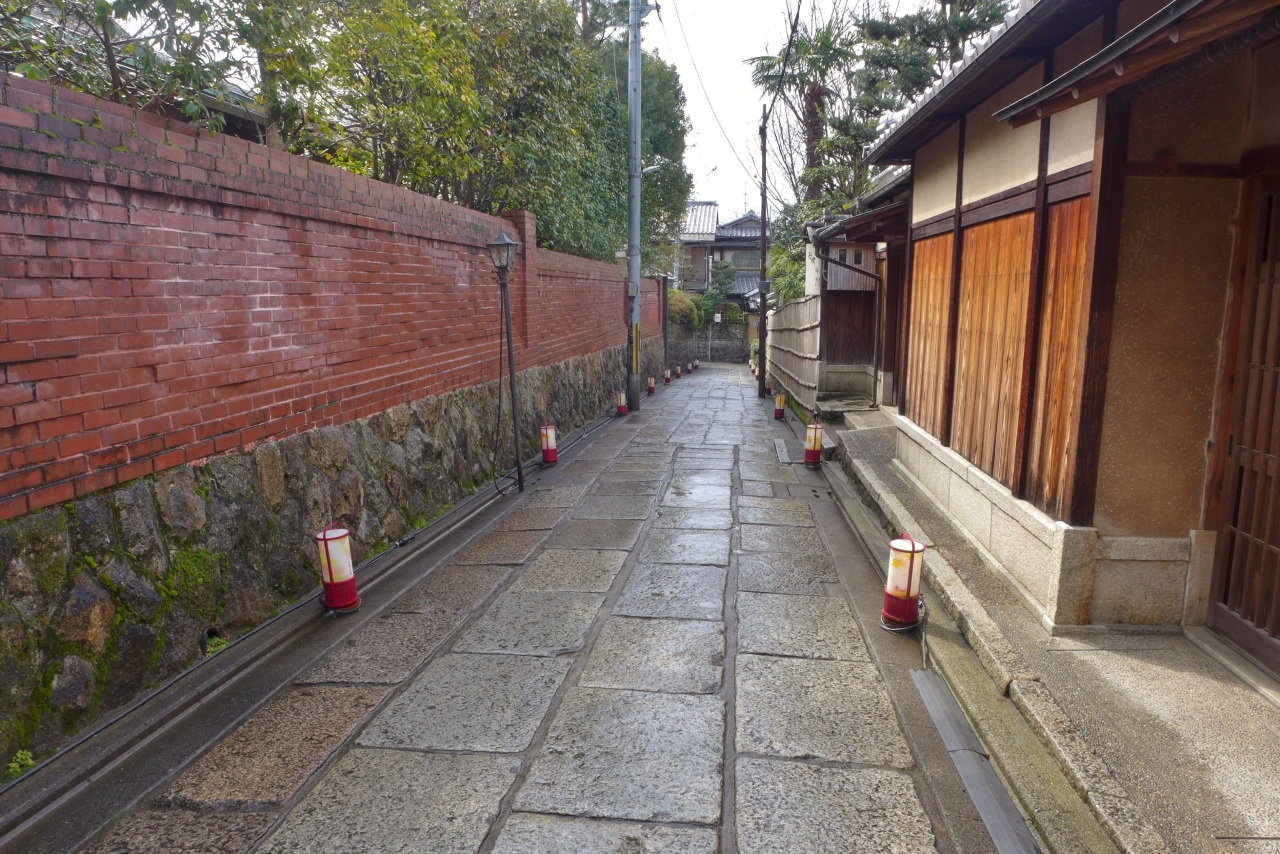 高台寺の前の通りが「ねねの道」だそうですが、この界隈には「ねねの小径」と名付けられた小路もあります。いずれも石畳が敷かれ京都らしい町家が建ち並ぶ風情ある通りでした。