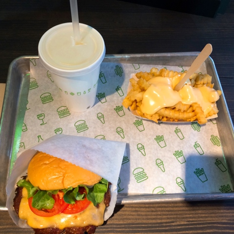 私はシャックバーガー、チーズフライ、オリジナルレモネードを注文。
