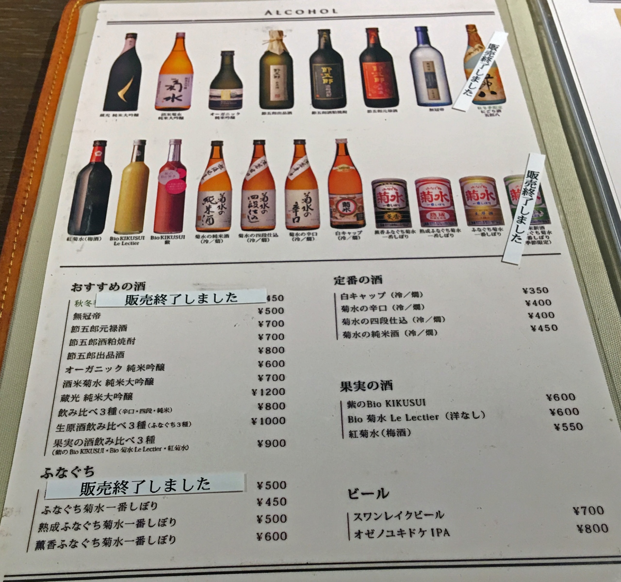 飲み比べ3種は、菊水の辛口、菊水の四段仕込、菊水の純米酒が、800円で飲み比べできます。今回はおつまみ無しでいただきました。