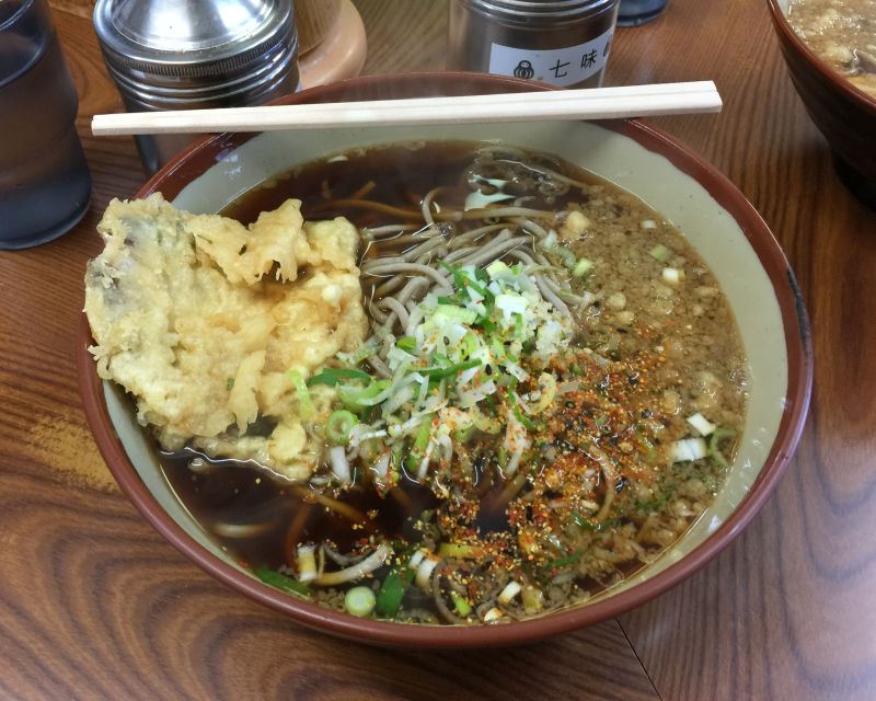 茹でめんを温め、真っ黒い濃いめのスープ。昔、駅のホームにあった立ち食い蕎麦屋の味を思い出しました。