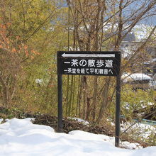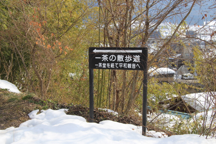 一茶の散歩道は座王神社の裏側から一茶堂を経由して世界平和観音まで通じているのですが、雪深くて危険を感じたので途中で断念しました。雪さえなければちょっと急勾配なところがありますが、静かな散歩道で良さそうです。冬場は行かない方が良いと思われます。
