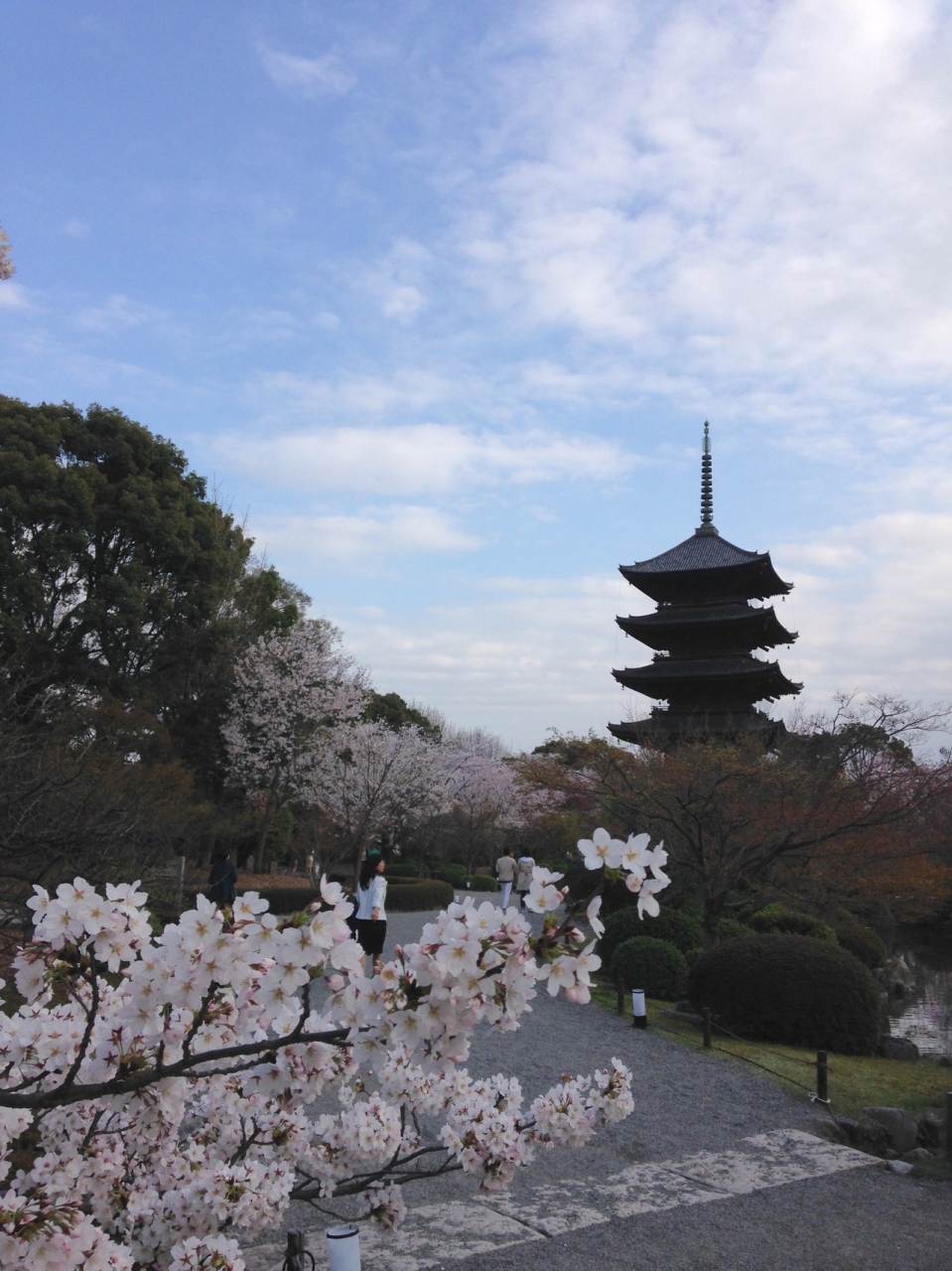 弘法大師ゆかりのお寺としても名高い東寺。近鉄東寺駅から徒歩5分です。20分ぐらいかかりますが京都駅までも歩いて行ける距離にあります。あまり日本人以外の観光客はおらず、日本人も少なめで、桜の名所としてわりと穴場かなと思いました。