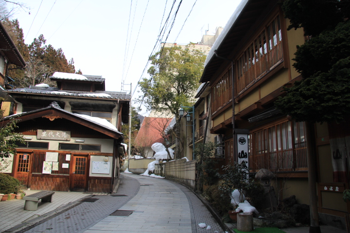 石畳の坂道に旅館や共同浴場・外湯などが固まっていて小さいながらも趣のある温泉街です。昔ながらの温泉街と言った感じです。
