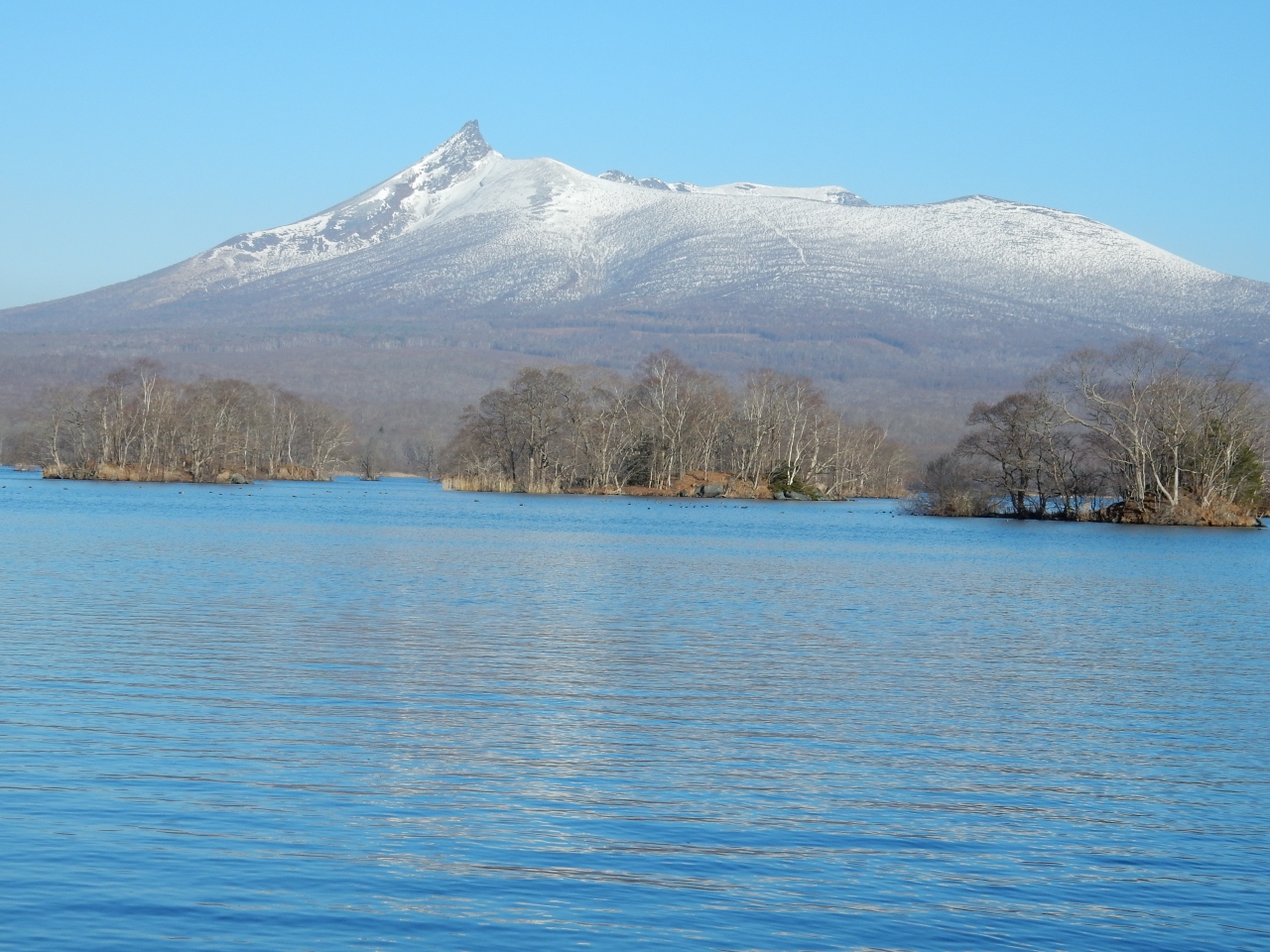駒ケ岳は本州でいえば磐梯山に似ていて、富士山のような山体の頂上が噴火で吹き飛んだようなフォルムです。大沼の静かな湖面の先に見える男性的な駒ケ岳は本当に美しく、道南のランドマークと言えます。