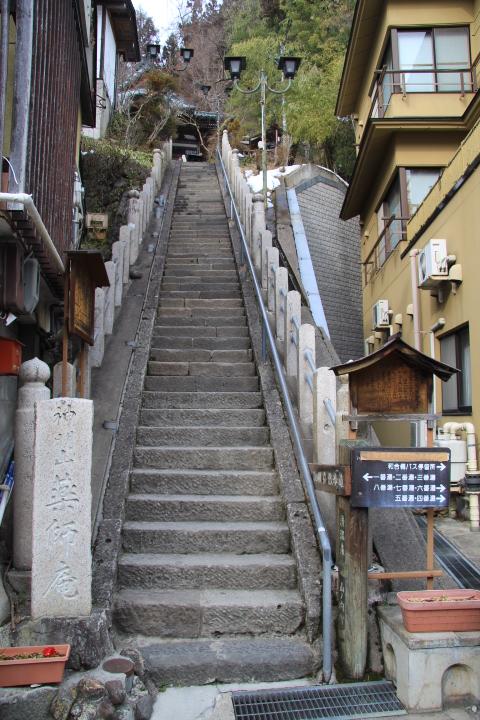 渋大湯の前のちょっと急な石段を上ると渋薬師庵があります。渋温泉の九ヶ所の外湯を巡り、渋薬師庵にお参りすると満願成就するとされています。高台にありますが、周りに建物も多く眺望はそれ程ではありません。お堂の前にユーモラスな狸の像がありました。