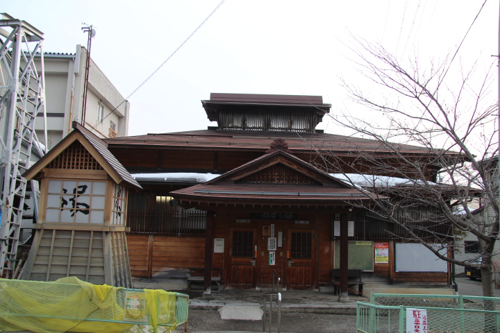 湯田中渋温泉郷のひとつで夜間瀬川右岸にあります。湯田中温泉の崖の下あたりです。